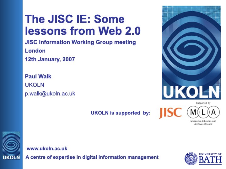 A presentation on The JISC IE: Some lessons from Web 2.0 to the JISC Information Working Group meeting in London.