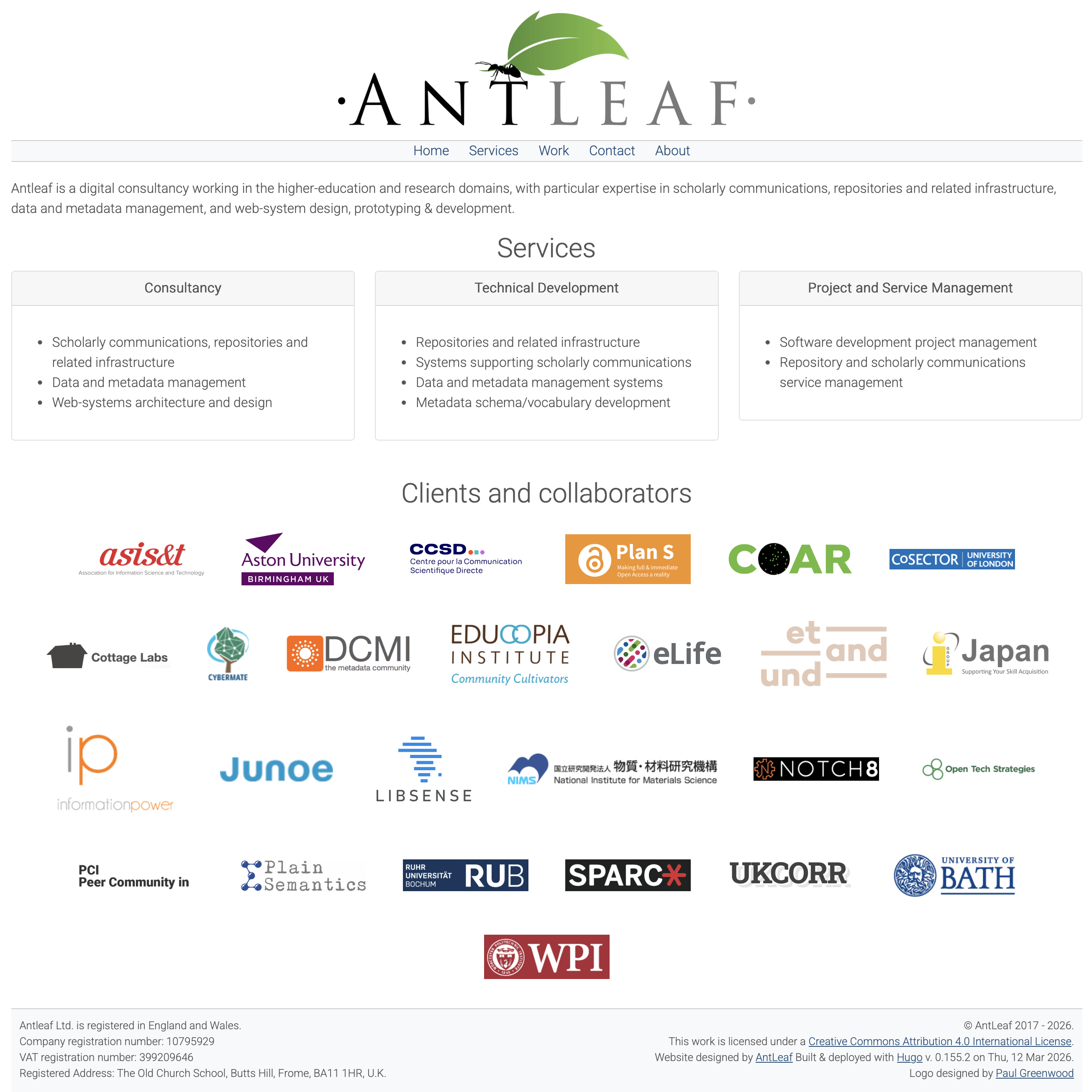 My digital consultancy working in the higher-education and research domains, with particular expertise in scholarly communications, repositories and related infrastructure, data and metadata management, and web-system design, prototyping & development.